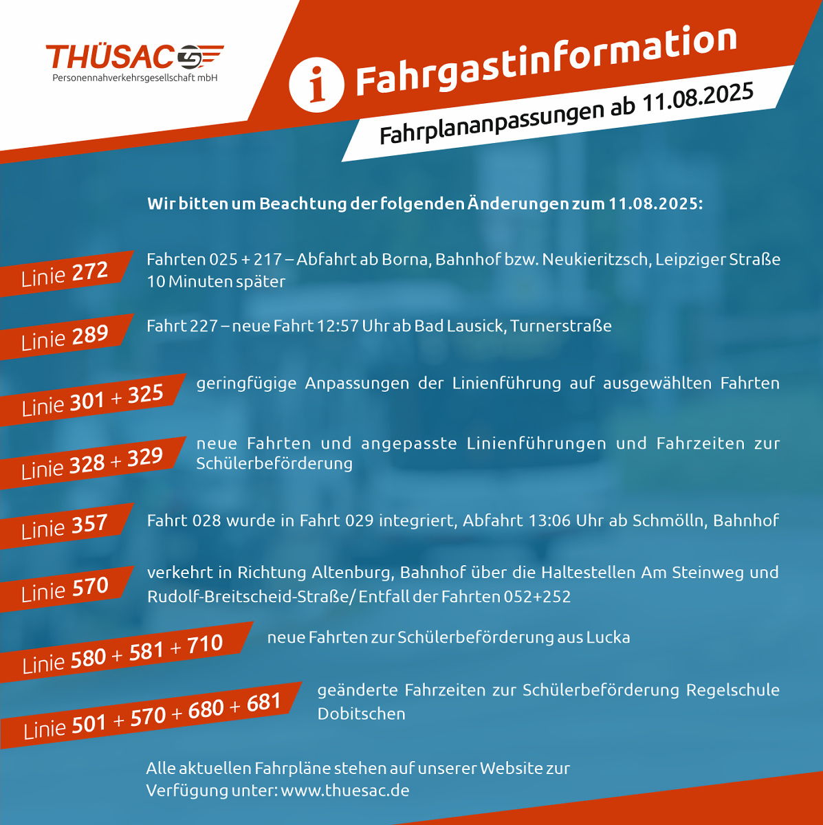 Das Gemeinschaftsprojekt der Landkreise Altenburger Land und Burgenlandkreis sowie der Verkehrsunternehmen PVG Burgenlandkreis GmbH und THÜSAC Personennahverkehrsgesellschaft mbH wird durch den Freistaat Thüringen und die Nahverkehrsservice Sachsen-Anhalt GmbH (NASA) finanziell unterstützt. Die PlusBus-Linie bietet eine durchgehende, verlässliche Verbindung über die Landesgrenze hinweg. Mit klaren Taktzeiten, modernen Fahrzeugen und direkter Anbindung an Bahn- und Regionalverkehr ist ein Angebot entstanden, das von Anfang an auf hohe Akzeptanz stieß.