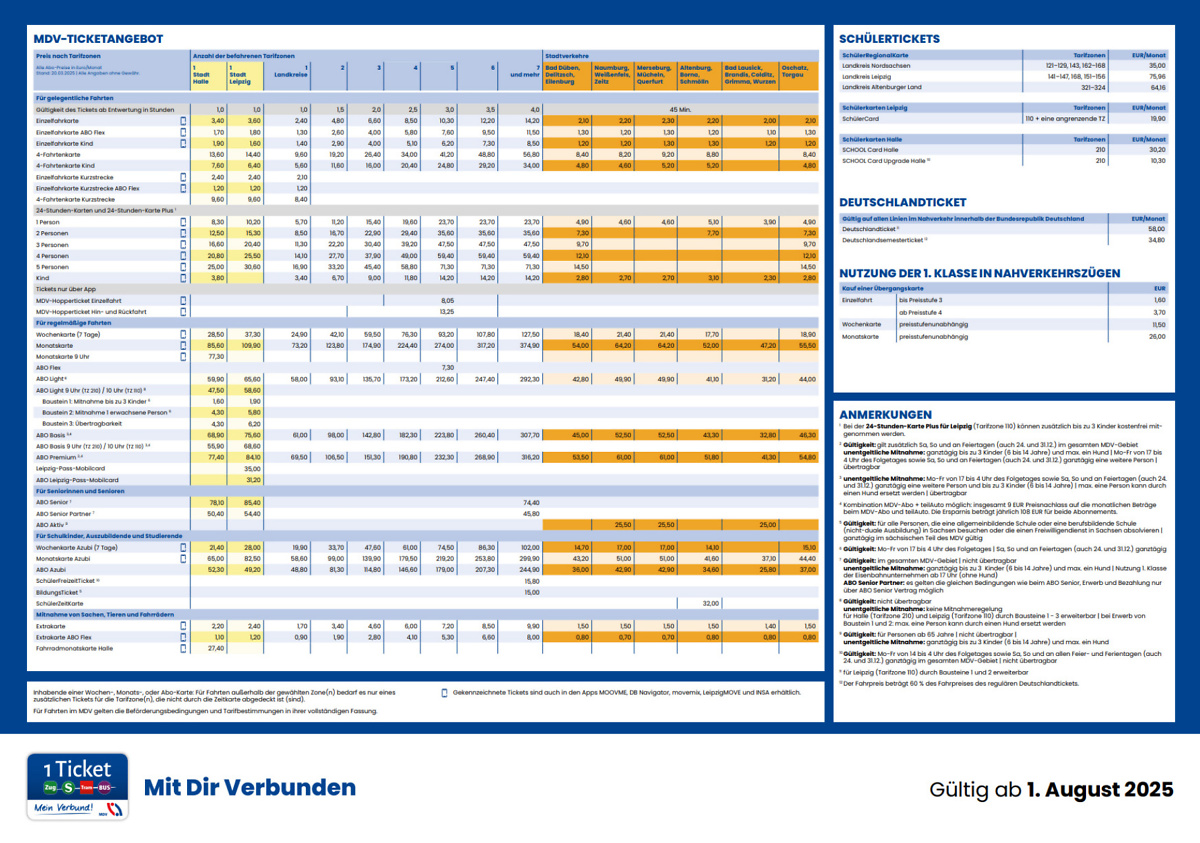 Mitnahmemöglichkeiten im MDV